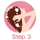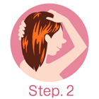 乾いた髪に塗っていき、その後放置します。シャワーキャップ等で暖めると、より染まりやすくなります。 |
